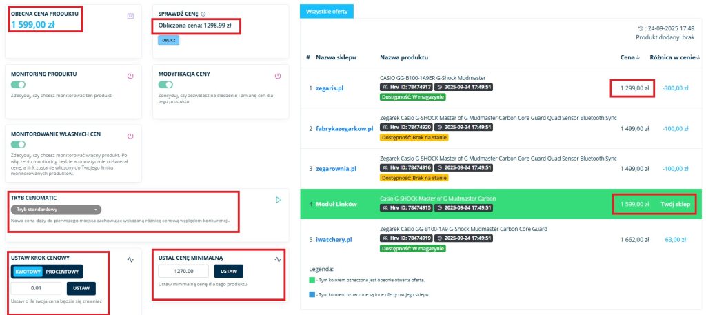 Co ważne – system nigdy nie schodzi poniżej ustalonej przez Ciebie ceny minimalnej. To gwarancja bezpieczeństwa dla Twojej marży.