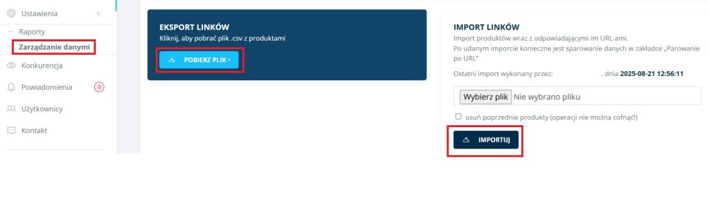- Linki konkurencyjnych sklepów również możesz dodawać bezpośrednio przez plik CSV.