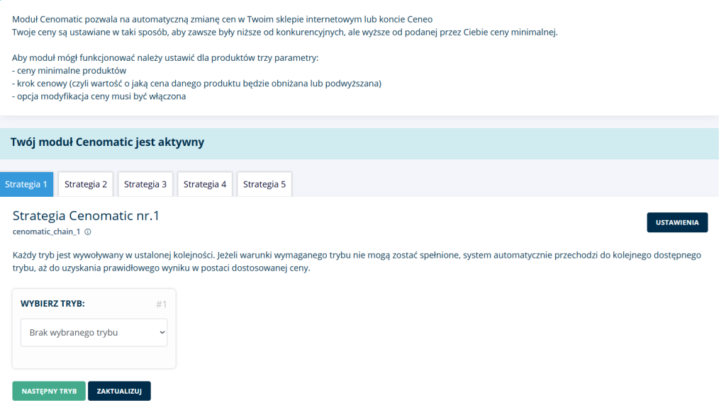 - Chcę być najtańszy na całym portalu – Tryb Standardowy.